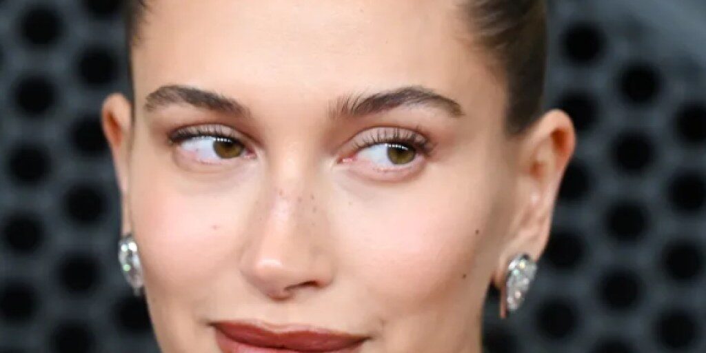 Hailey Bieber Wore Moody Lip Gloss Nails on the Grammys Red Carpet