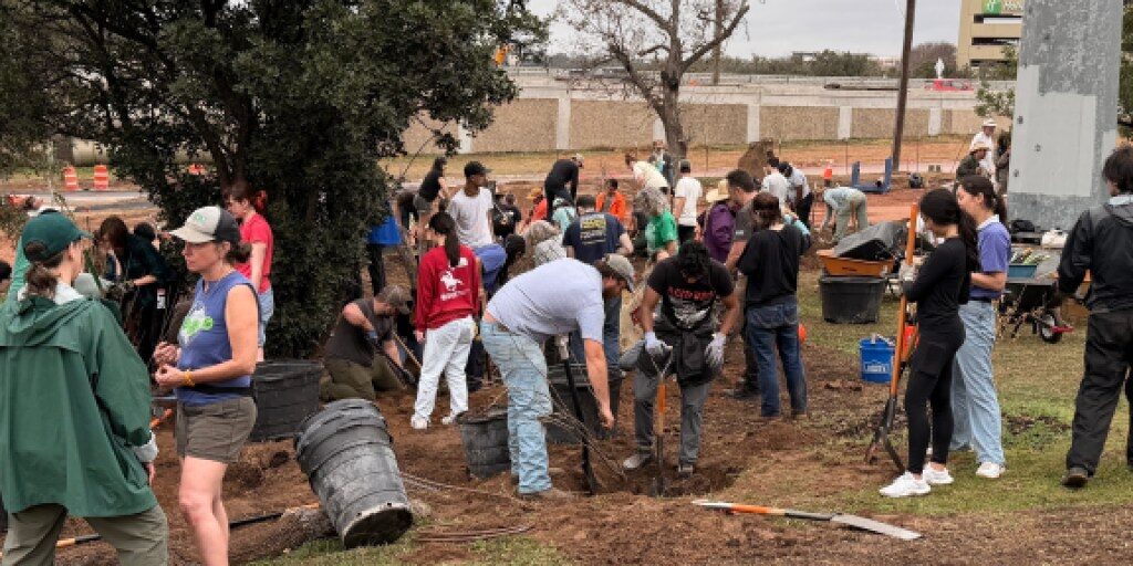 Volunteers at Austin’s Festival Beach Food Forest rushed to save more than 90 plants after learning a temporary wastewater line for the I‑35 expansion will cut through recently planted...