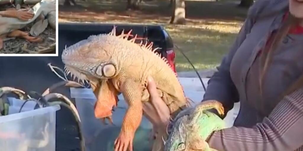 Floridians gather frozen iguanas by armload as frigid temps leave them paralyzed, dropping from trees