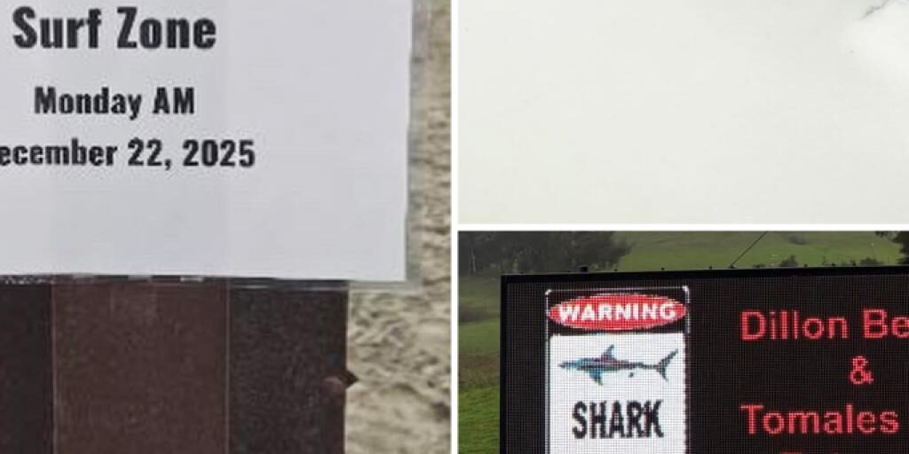 A California surfer is thanking his lucky stars after a terrifying brush with a great white shark that smashed his surfboard in an area locals have dubbed the “shark...