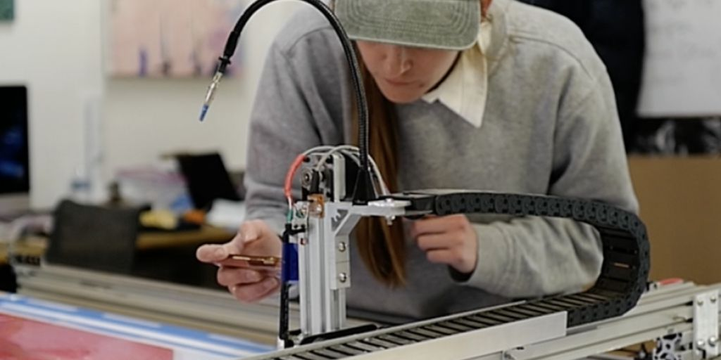 Gretchen Andrew at work. Courtesy Gretchen Andrew There is a direct line between lip fillers and the techno-apocalypse, and Gretchen Andrew draws that line with her latest Universal Beauty...